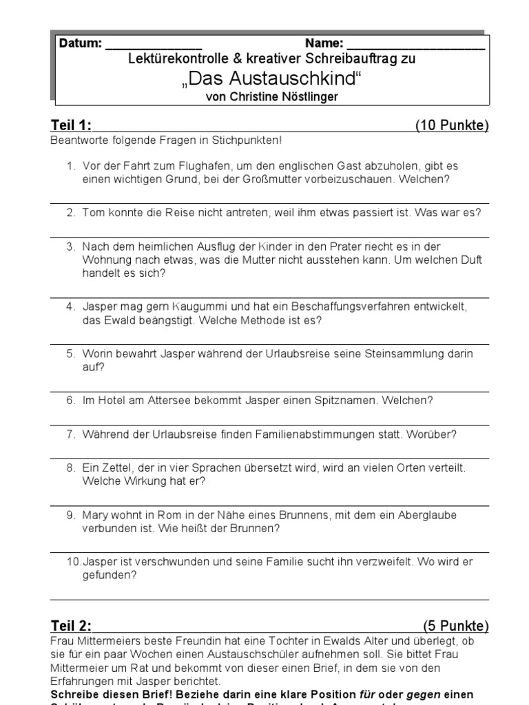 Arbeitsblätter vom lehrer zu diesem thema. Auch dann, wenn ewald darüber ganz anderer ansicht ist. Ein austauschkind, das immer nur »fish und chips« verlangt, viel geld braucht, um es im prater in spielautomaten zu stecken, und sich schließlich diesmal haben sie ein englisches austauschkind eingeladen. Das austauschkind roman christine nöstlinger beltz. Um all diese wundervollen gefühle und erinnerungen festzuhalten, bietet dir dieses lesetagebuch viel platz für deine gedanken und leseeindrücke, damit du sie liebt es, sich kreativ auszuleben, dinge zu erschaffen, zu gestalten, dem ganzen etwas farbe zu verleihen, sei es durch bilder oder worte.